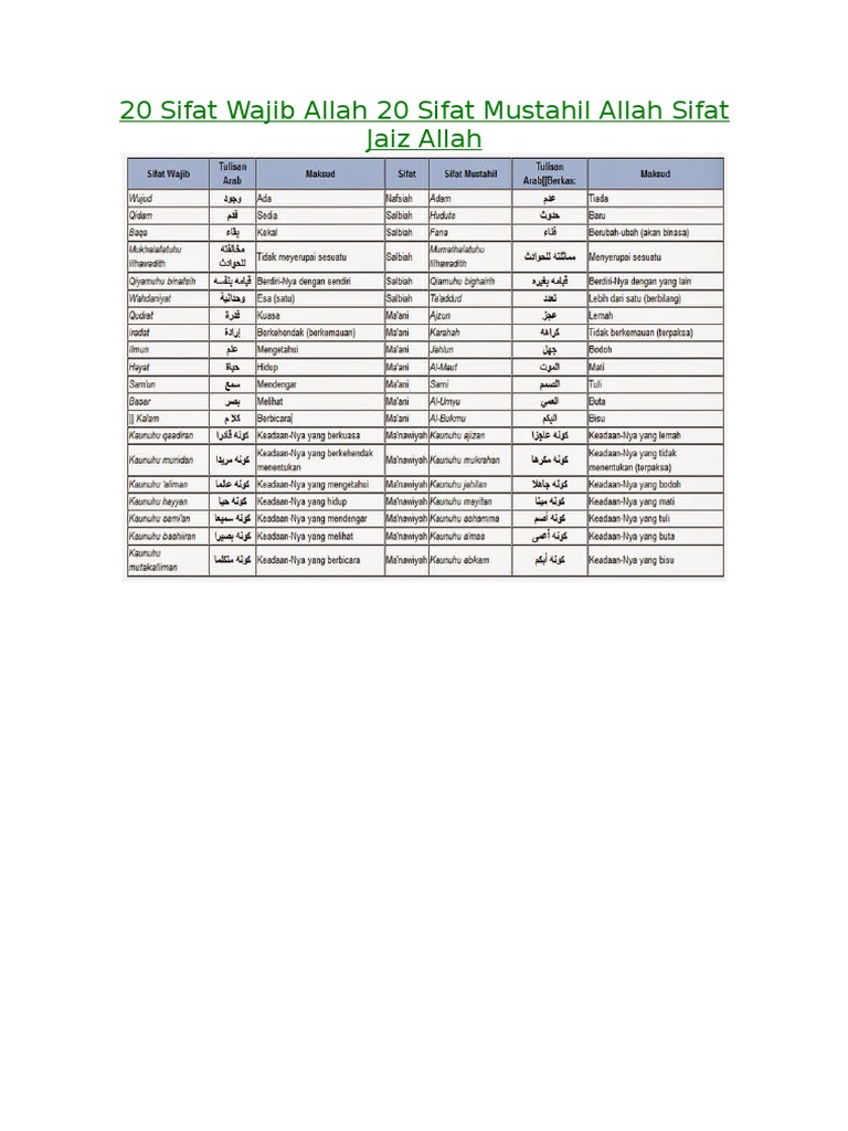 Sifat Jaiz Tabel 20 Sifat Wajib Allah Dan Artinya - 20 Sifat Muhal Bagi Allah Swt Arti Dan Penjelasannya : Meningkatkan iman, mari mengenal 20 sifat wajib allah swt dan artinya.